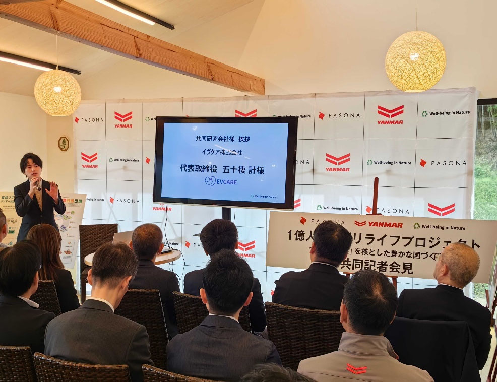 本イベントには、一般社団法人Well-being in Nature、株式会社パソナグループ、ヤンマーホールディングス株式会社、TOPPAN株式会社、自給自足カレッジ株式会社、イヴケア株式会社、滋賀大学などが共同研究機関として参加し、各代表者による挨拶と今回の共同研究に対して期待する事について各社様からのご意見を頂きました。
